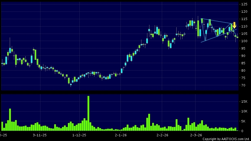 Triangle Breakout means the volatility of price movement is decreasing, stock price finally broke the bottom of triangle. A downward trend will start.(HK stocks quote is delayed for at least 15 mins.Short Selling Data as at 2026-04-01 16:25.)