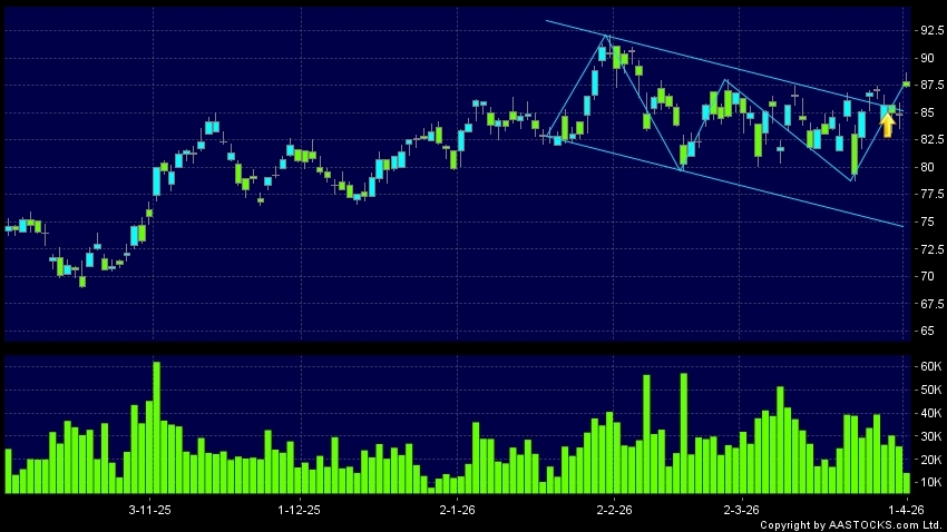 Disclaimer:The information, financial market data, quotes, charts, statistics and / or various technical analysis indicators are automatically generated based on the analyses and interpretations of publicly available information and should be used as references only at your own discretion. Such automatically generated content does not reflect the views or opinions of AASTOCKS.com Limited nor does AASTOCKS.com Limited make any guarantees to their accuracy, completeness, timeliness or correctness. You are advised to consult independent professional advice to verify pricing information or to obtain more detailed market information. Any uses of information or trades executed following the said automatically generated content are taken at your own risk for your own account.