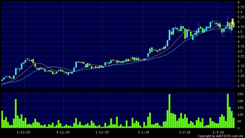 Disclaimer:The information, financial market data, quotes, charts, statistics and / or various technical analysis indicators are automatically generated based on the analyses and interpretations of publicly available information and should be used as references only at your own discretion. Such automatically generated content does not reflect the views or opinions of AASTOCKS.com Limited nor does AASTOCKS.com Limited make any guarantees to their accuracy, completeness, timeliness or correctness. You are advised to consult independent professional advice to verify pricing information or to obtain more detailed market information. Any uses of information or trades executed following the said automatically generated content are taken at your own risk for your own account.