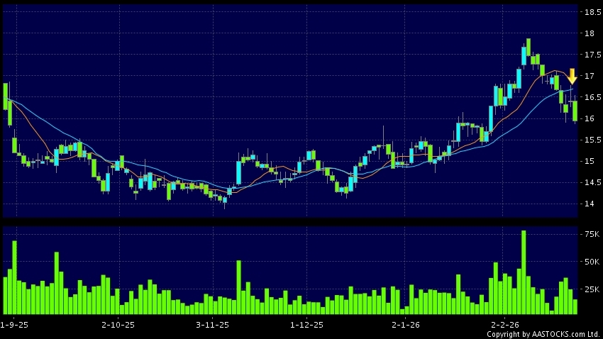Death cross is a bearish signal, which the short term SMA crosses below long term SMA, such as SMA 50 crosses below SMA 250. Investor should watch closely.(HK stocks quote is delayed for at least 15 mins.Short Selling Data as at 2026-02-26 16:25.)