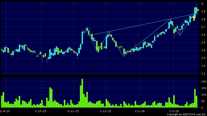 头肩底是典型的利好讯号,当股价升穿阻力线时,升势确认股价将持续上升,技术走势向好。(港股报价延迟最少十五分钟。沽空资料截至 2026-03-18 16:25。)