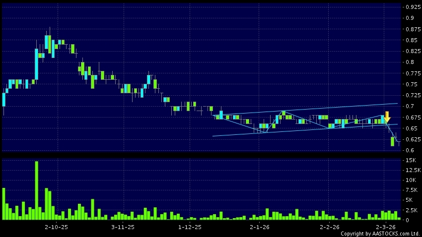 免責聲明:以上金融市場數據、報價、圖表 及/或各種技術分析指標乃根據公開資料分析和演釋自動生成的,僅作參考使用。此類自動生成的內容並不代表AASTOCKS.com Limited的立場。AASTOCKS.com Limited並不保證其準確性、完整性、實時性或者正確性。閣下應諮詢獨立專業意見,以核實定價資料或獲取更詳細的市場信息及須為所有跟隨此類自動生成的內容執行的交易或使用該內容負責。