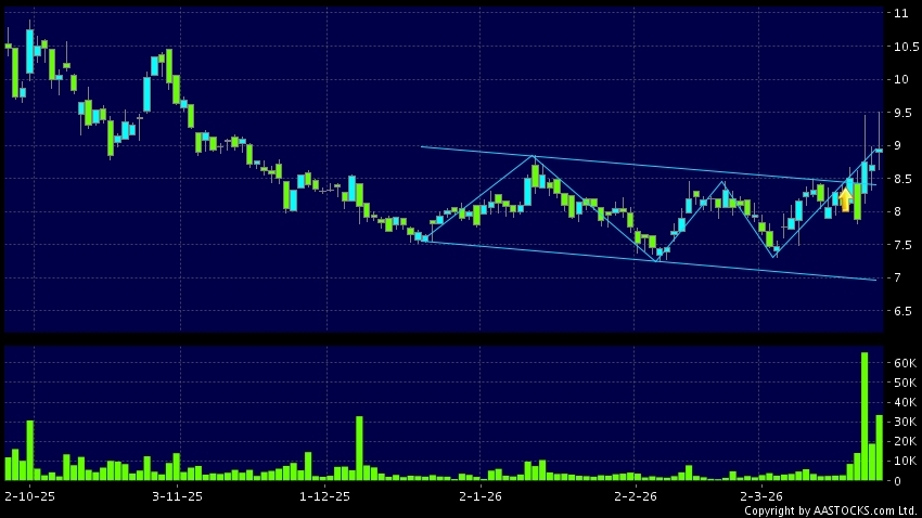 區域突破指股價在過去的一段時間只在一個範圍在內活動,然後股價上升作出突破,升穿區域的頂部,技術走勢向好。(港股報價延遲最少十五分鐘。沽空資料截至 2026-03-25 16:25。)