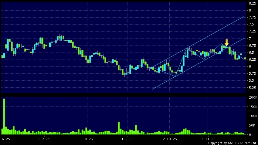 區域突破指股價在過去的一段時間只在一個範圍在內活動,然後股價下跌作出突破,跌穿區域的底部,技術走勢偏軟。(港股報價延遲最少十五分鐘。沽空資料截至 2025-12-01 16:25。)