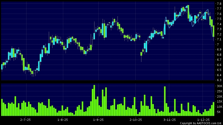 Disclaimer:The information, financial market data, quotes, charts, statistics and / or various technical analysis indicators are automatically generated based on the analyses and interpretations of publicly available information and should be used as references only at your own discretion. Such automatically generated content does not reflect the views or opinions of AASTOCKS.com Limited nor does AASTOCKS.com Limited make any guarantees to their accuracy, completeness, timeliness or correctness. You are advised to consult independent professional advice to verify pricing information or to obtain more detailed market information. Any uses of information or trades executed following the said automatically generated content are taken at your own risk for your own account.