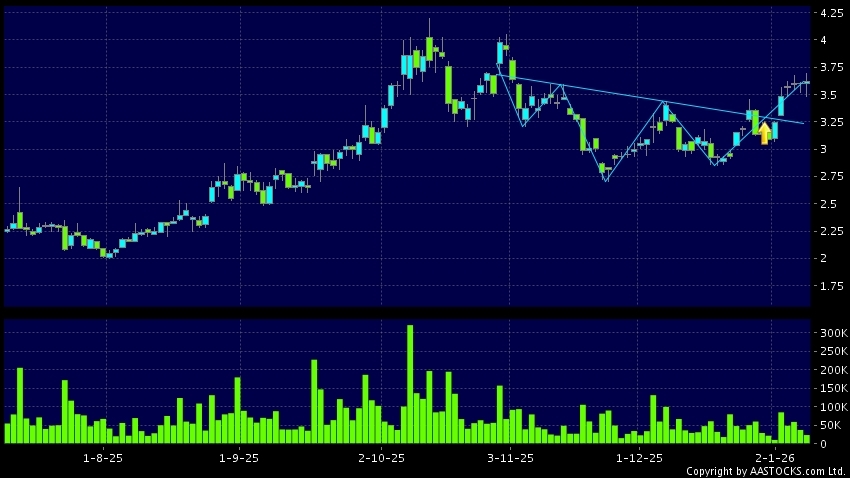 CGN MINING(01164.HK) appears an upside breakout, rose above the neckline. Last printed at 3.630; rose 0.833%; on volume of 23.08M shares and turnover of $83.47MRecent PerformanceIn...