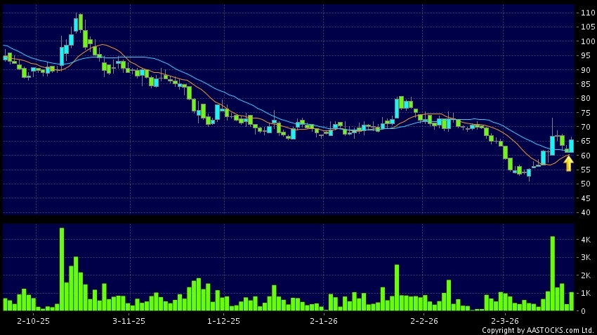 BLOKS(00325.HK)'s SMA 10 crosses above SMA 20, which is a golden cross. Last printed at 65.550; rose 7.283%; on volume of 1.06M shares and turnover of $68.49MRecent PerformanceIn 3...