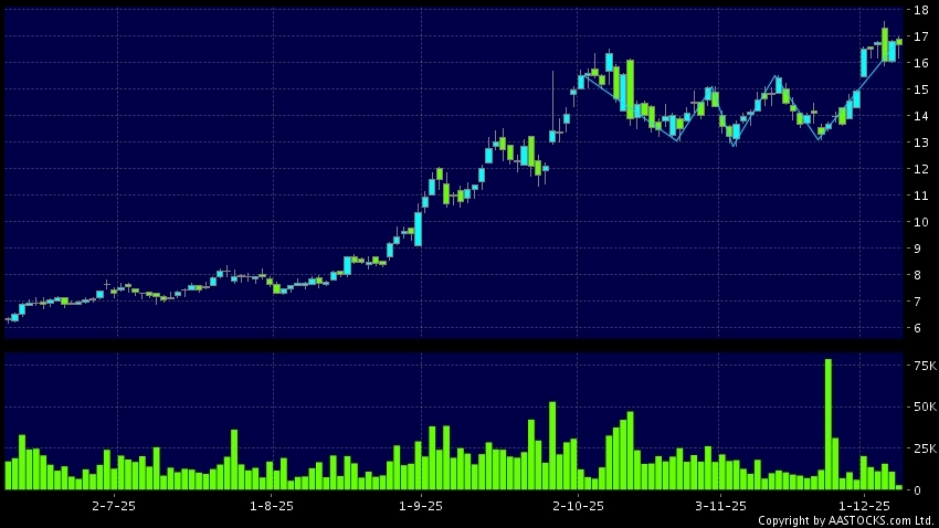 Disclaimer:The information, financial market data, quotes, charts, statistics and / or various technical analysis indicators are automatically generated based on the analyses and interpretations of publicly available information and should be used as references only at your own discretion. Such automatically generated content does not reflect the views or opinions of AASTOCKS.com Limited nor does AASTOCKS.com Limited make any guarantees to their accuracy, completeness, timeliness or correctness. You are advised to consult independent professional advice to verify pricing information or to obtain more detailed market information. Any uses of information or trades executed following the said automatically generated content are taken at your own risk for your own account.