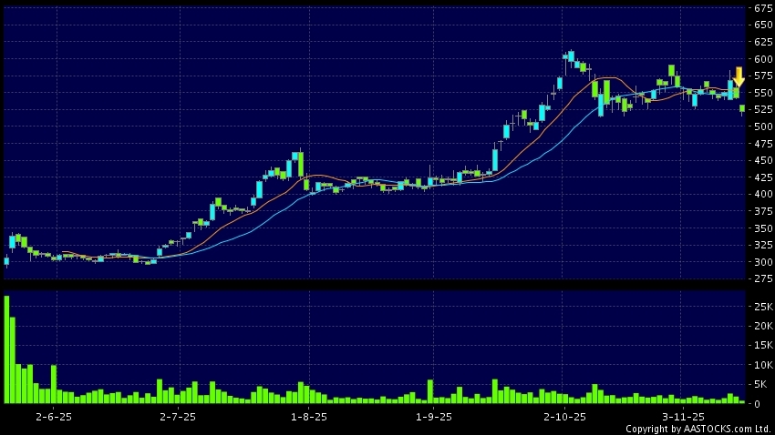 Disclaimer:The information, financial market data, quotes, charts, statistics and / or various technical analysis indicators are automatically generated based on the analyses and interpretations of publicly available information and should be used as references only at your own discretion. Such automatically generated content does not reflect the views or opinions of AASTOCKS.com Limited nor does AASTOCKS.com Limited make any guarantees to their accuracy, completeness, timeliness or correctness. You are advised to consult independent professional advice to verify pricing information or to obtain more detailed market information. Any uses of information or trades executed following the said automatically generated content are taken at your own risk for your own account.
