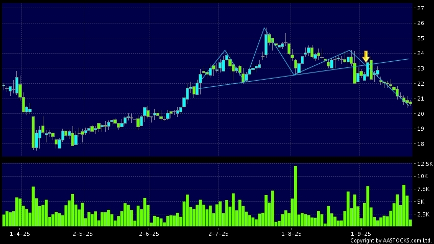 Head Shoulders top is a typical bearish signal, when stock price breaks the supportive level, downtrend would possibly start.(HK stocks quote is delayed for at least 15 mins.Short Selling Data as at 2025-10-02 16:25.)