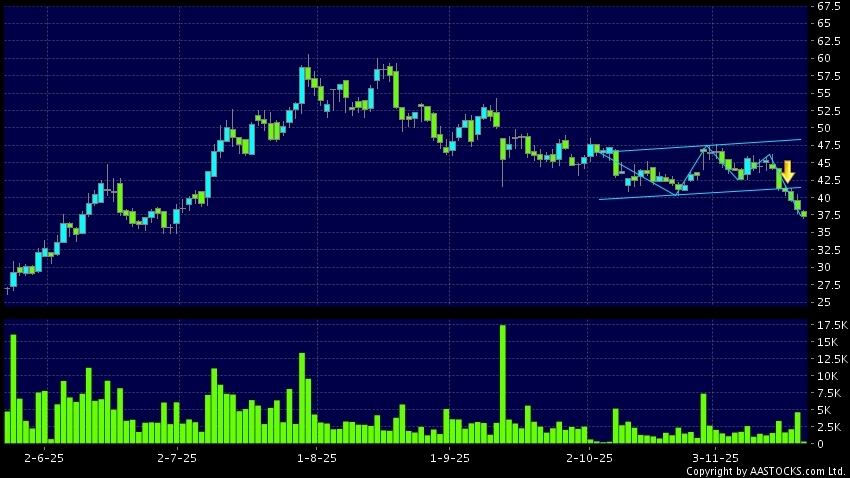 区域突破指股价在过去的一段时间只在一个范围在内活动,然後股价下跌作出突破,跌穿区域的底部,技术走势偏软。(港股报价延迟最少十五分钟。沽空资料截至 2025-12-12 16:25。)