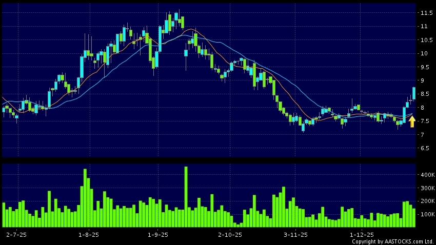 黄金交叉是一个利好讯号,指股价的短期移动平均线升穿长期移动平均线,例如50天线升穿250天线,在图表上构成交叉的形状。股价通常会上升形成一个上升趋势,技术走势向好。(港股报价延迟最少十五分钟。沽空资料截至 2025-12-24 12:25。)
