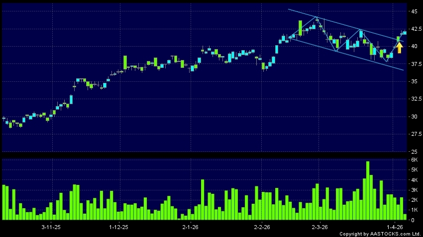 区域突破指股价在过去的一段时间只在一个范围在内活动,然後股价上升作出突破,升穿区域的顶部,技术走势向好。(港股报价延迟最少十五分钟。沽空资料截至 2026-04-16 16:25。)