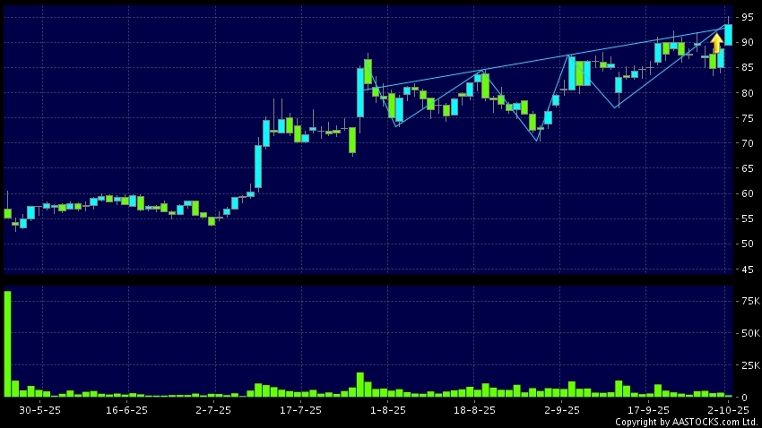 头肩底是典型的利好讯号,当股价升穿阻力线时,升势确认股价将持续上升,技术走势向好。(港股报价延迟最少十五分钟。沽空资料截至 2025-10-02 16:25。)